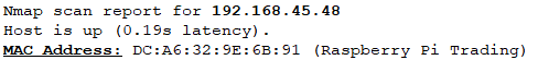 만약 OS를 설치한지 얼마 안되었다면 전원 연결 직후 바로 켜지는 것이 아니고 입력된 설정이 진행되므로, 최초 부팅 시 약 3~5분가량이 소요될 수 있으니 바로 스캔 때려봐야 안 뜰수도 있다. 아까와는 다르게 하나 더 ip가 추가적으로 잡히는 것을 볼 수 있다.