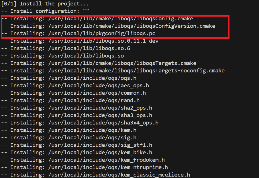 이러면 알아서 liboqs 다운로드 및 설치, oqs-provider 까지 다 설치 해준다.